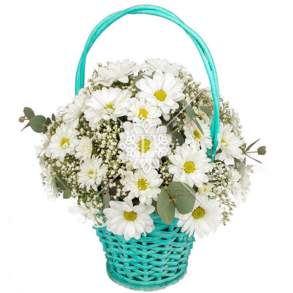 Получателю этой цветочной корзины, несомненно, будет приятен такой цветочный подарок! Словно легкие и воздушные облака, белоснежные цветы покоряют своей свежестью и легкостью.